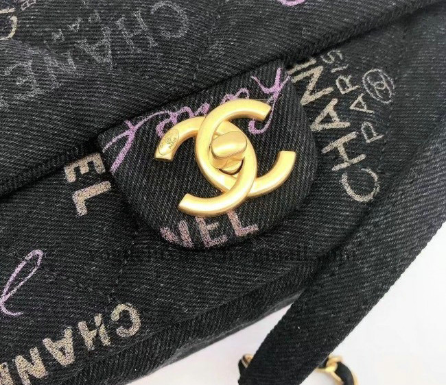 Chanel Printed Denim Small Flap Bag AS3134 Black/Multicolor 2022 TOP