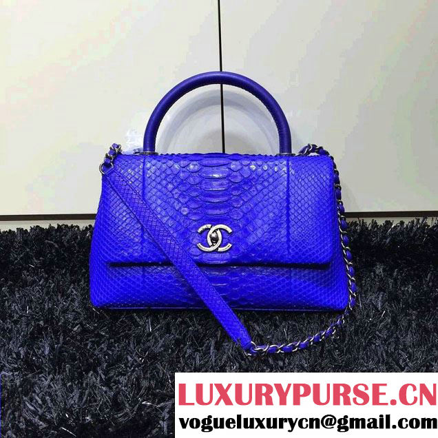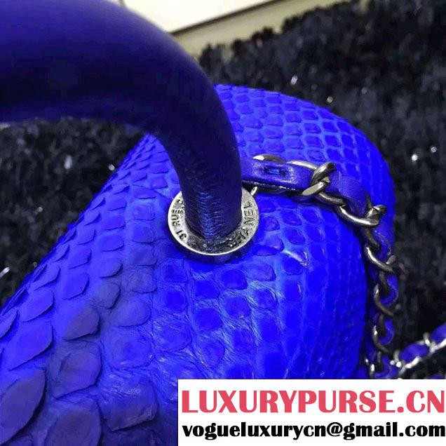 / Chanel Python and Lambskin Flap Large Bag with Handle A93279 Blue 2016