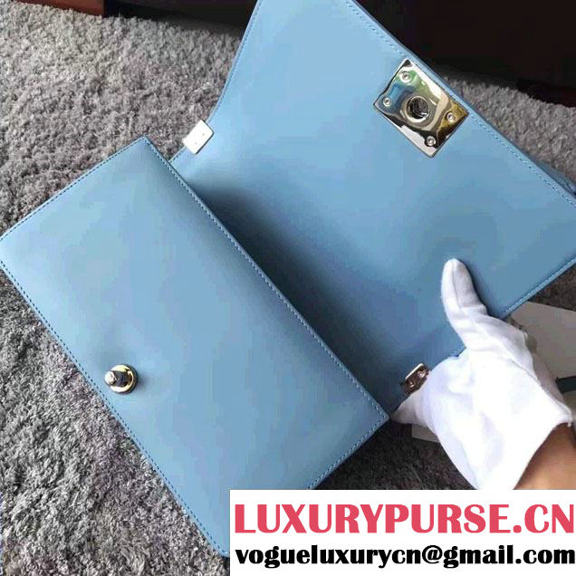 Chanel Pleated Calfskin Boy Flap Shoulder Medium Bag Blue/Burgundy 2016