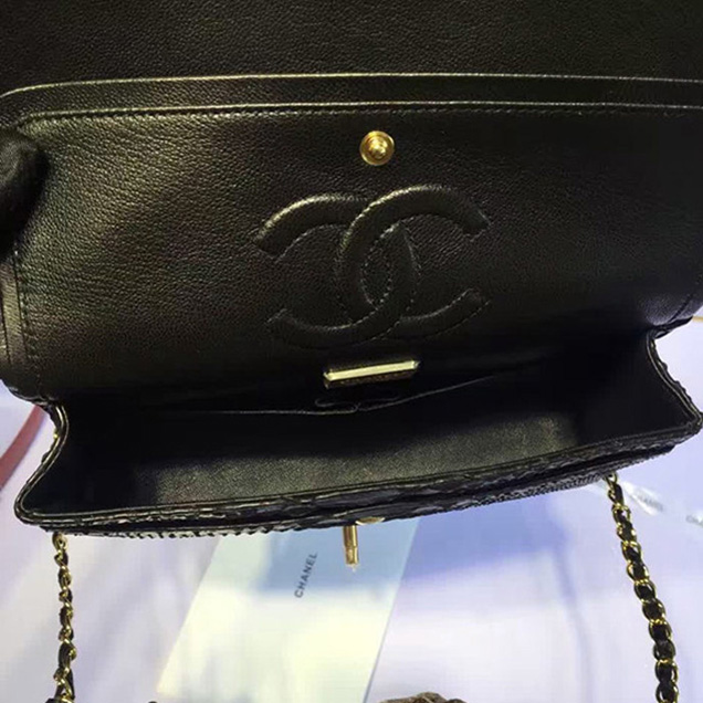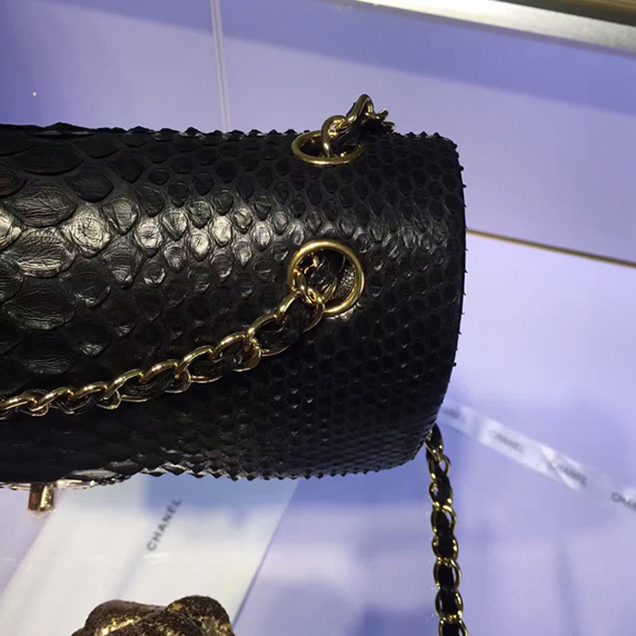 Chanel Python Classic Flap Bag A1112 Black Gold-Tone Metal