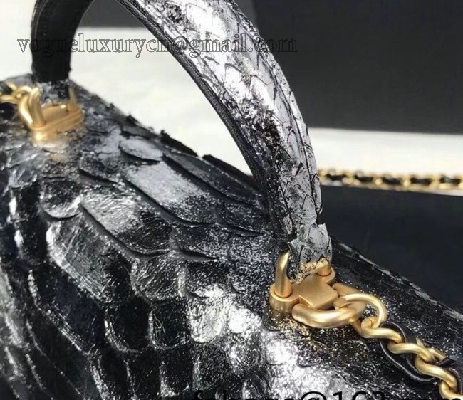 Chanel Python Embossed Mini Flap Bag with Top Handle AS2431 Black/Silver 2022 25