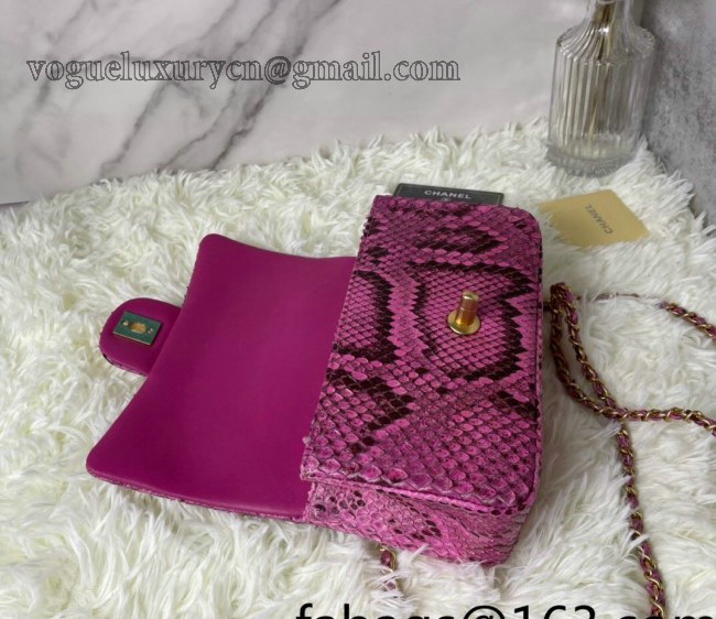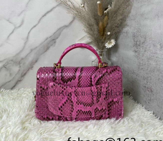 Chanel Python Embossed Mini Flap Bag with Top Handle AS2431 Fuchsia Pink 2022 12