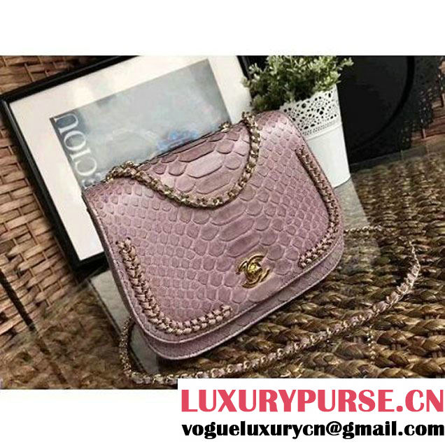 Chanel Python Leather Chain Braided Chic Medium Flap Bag A98774 Light Pink 2017 (1A111-7041108 )