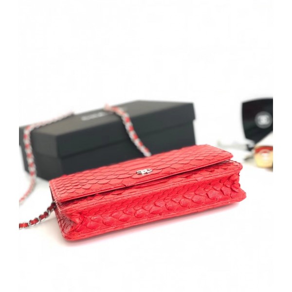 / Chanel Python Leather Wallet On Chain WOC Flap Bag Red 2018