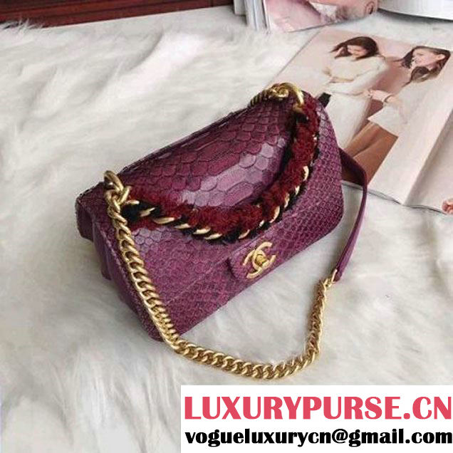 Chanel Python/Lambskin Mini Flap Bag with Chain/Tweed Handle A91863 Fuchsia 2017 (AV-7091307 )