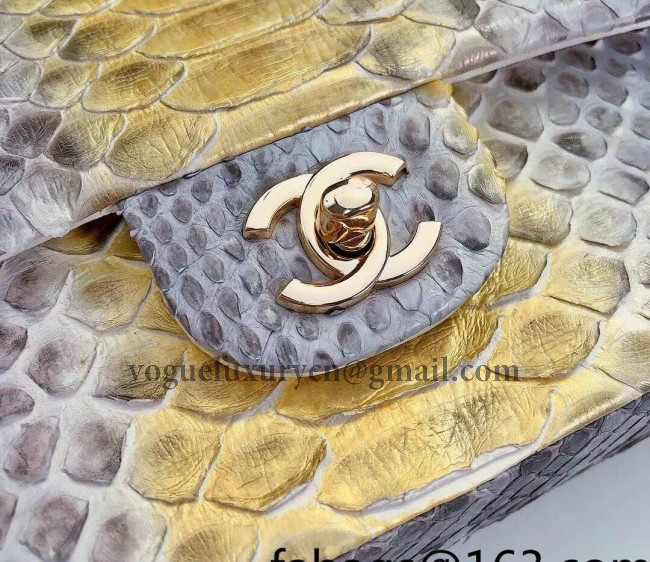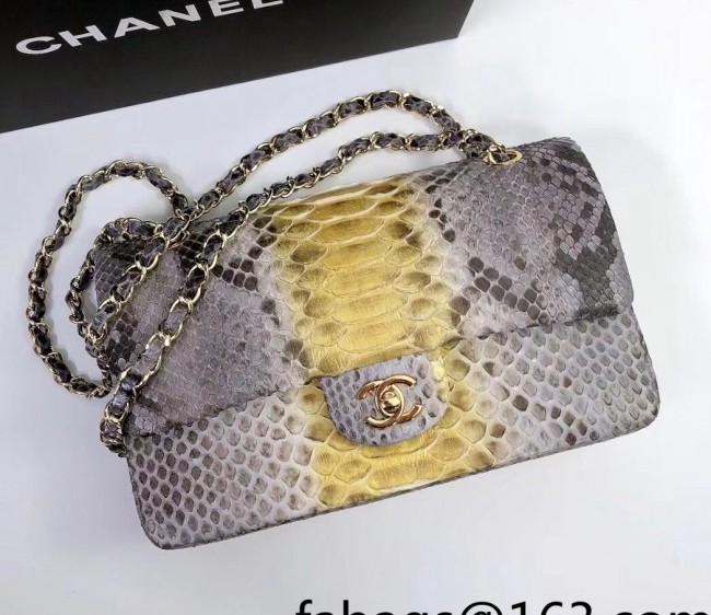 Chanel Pythonskin Embossed Leather Medium Calssic Flap Bag A01112 Gray/Yellow 2022 04