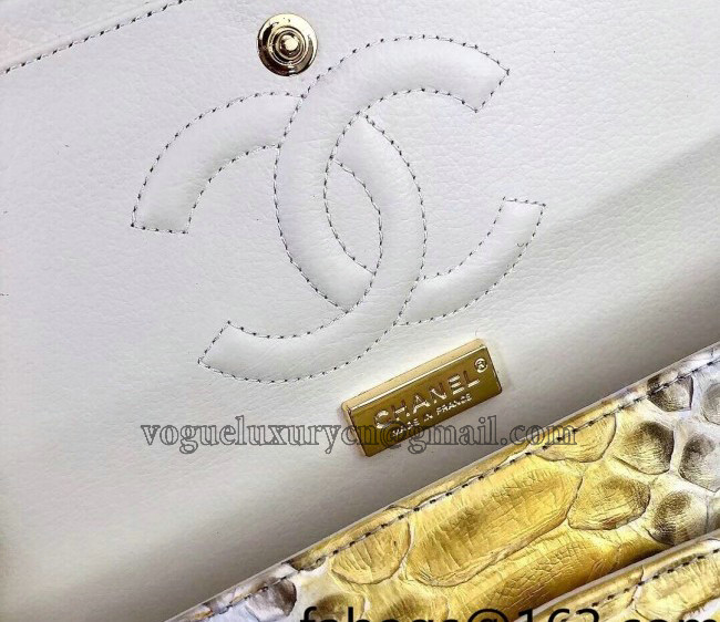 / Chanel Pythonskin Embossed Leather Medium Calssic Flap Bag A01112 Gray/Yellow 2022 04