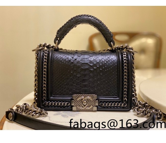 / Chanel Pythonskin Leather Small Boy Flap bag with Top Handle and Chain Black/Aged Silver 2022