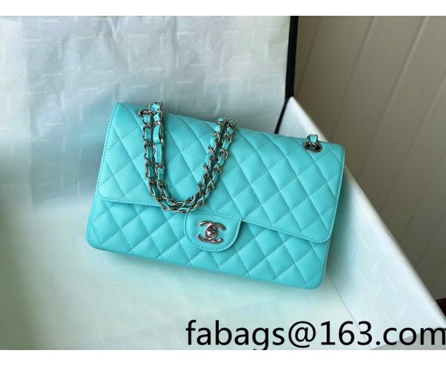 Chanel Quilted Grained Calfskin Medium Classic Flap Bag A01112 Turquoise Blue/Silver 2022