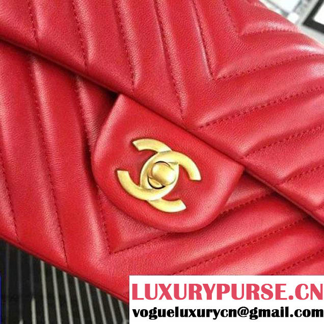 Chanel Red Lambskin Medium Chevron Quilting Classic Flap Bag SS 2015