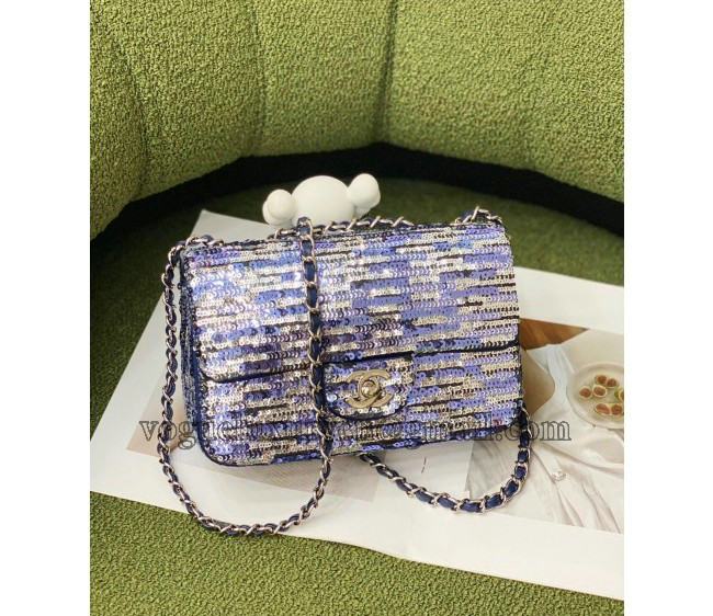 / Chanel Sequin Classic Mini Flap Bag Blue SS 2022