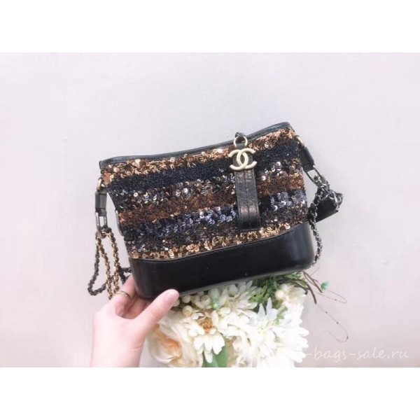 / Chanel Sequins Gabrielle Small Hobo Bag A91810 Black/Gold 2019