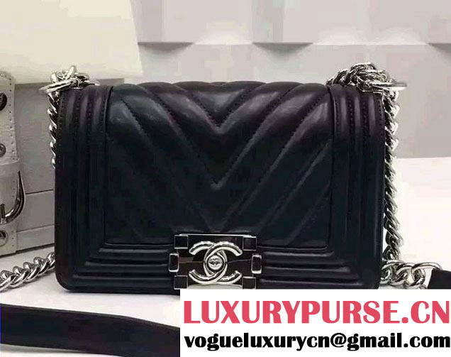 Chanel Shine Hardware Calfskin Boy Chevron Flap Small Bag Black 2016