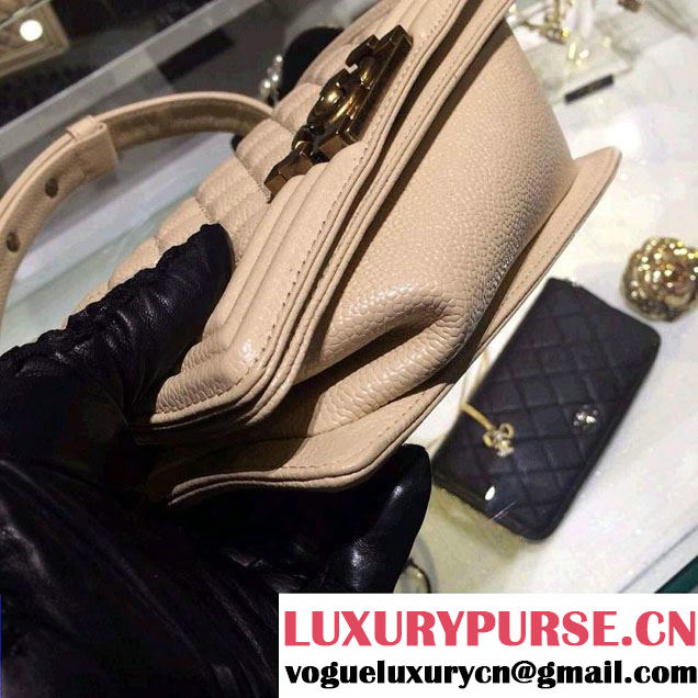 Chanel Small Boy Flap Shoulder Bag Beige Caviar Leather with Golden Hardware