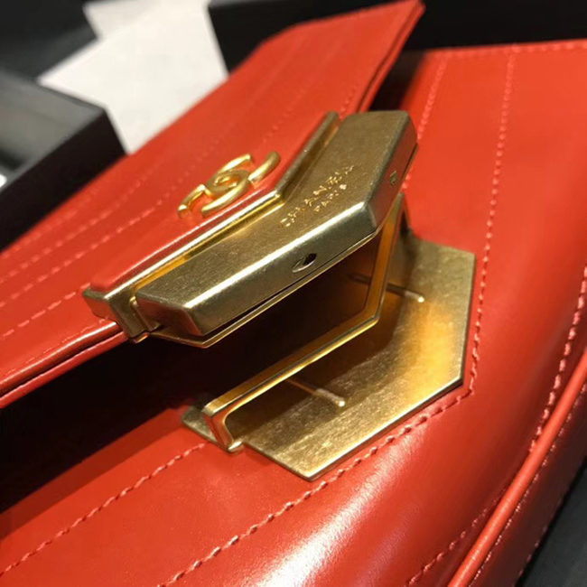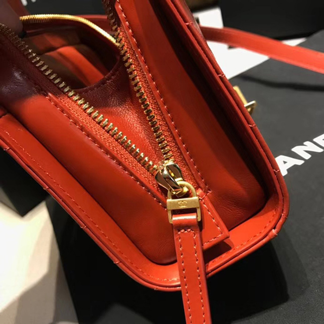 Chanel Small Flap Bag A57490 Orange Calfskin Gold Tone Metal