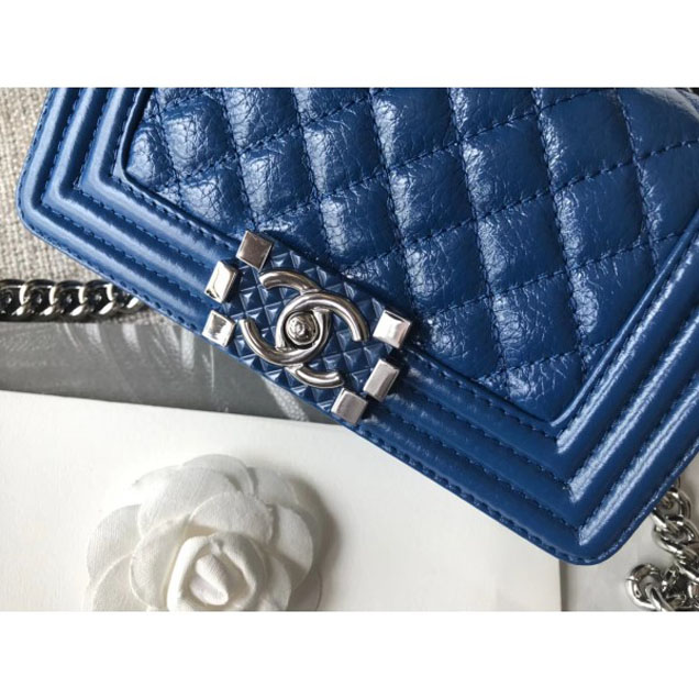 Chanel Small Metallic Crumpled Waxy Leather Resin Boy Flap Shoulder Bag Blue