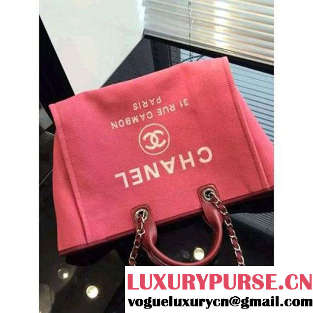 Chanel Toile Large Deauville Canvas Shopping Bag Red 2015