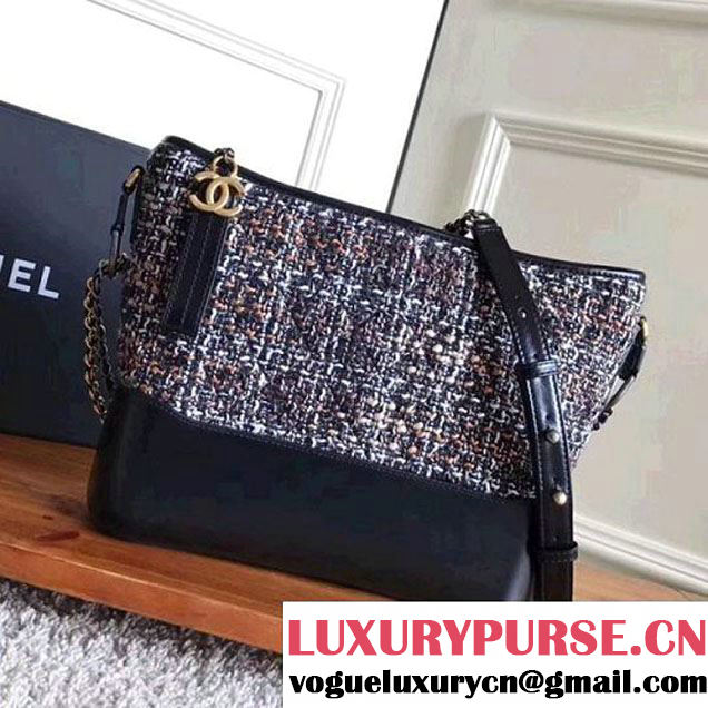 Chanel Tweed/Calfskin Gabrielle Small Hobo Bag A93824 Multicolor Black 2017 (KN-7121106 )
