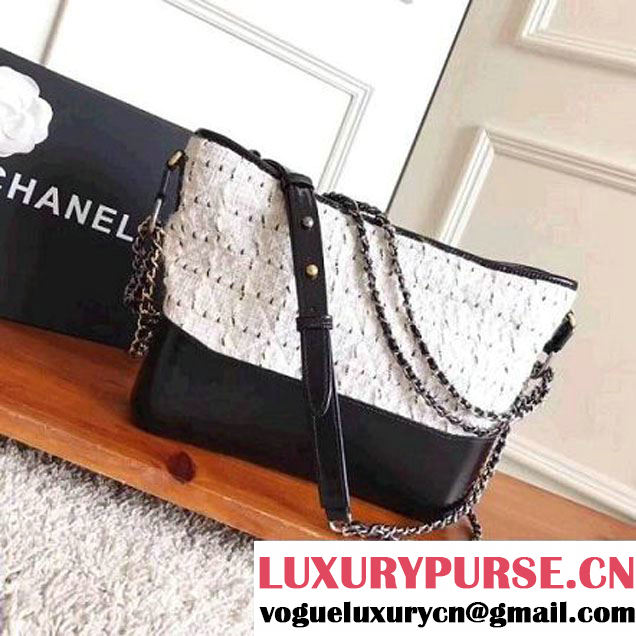 Chanel Tweed/Calfskin Gabrielle Medium Hobo Bag A93824 White/Black 2017 (KN-7101006 )