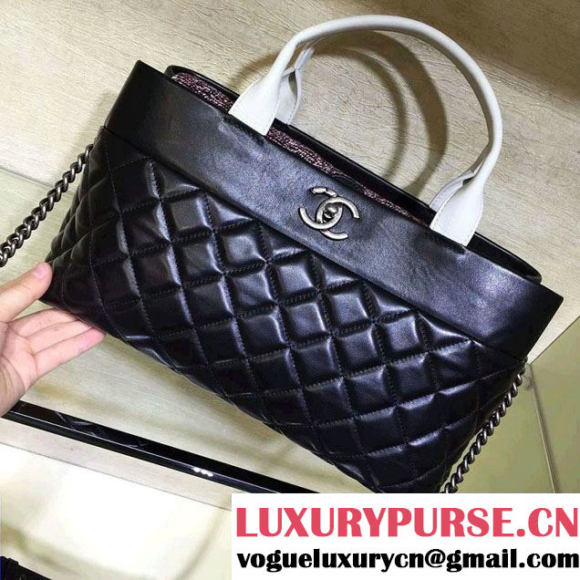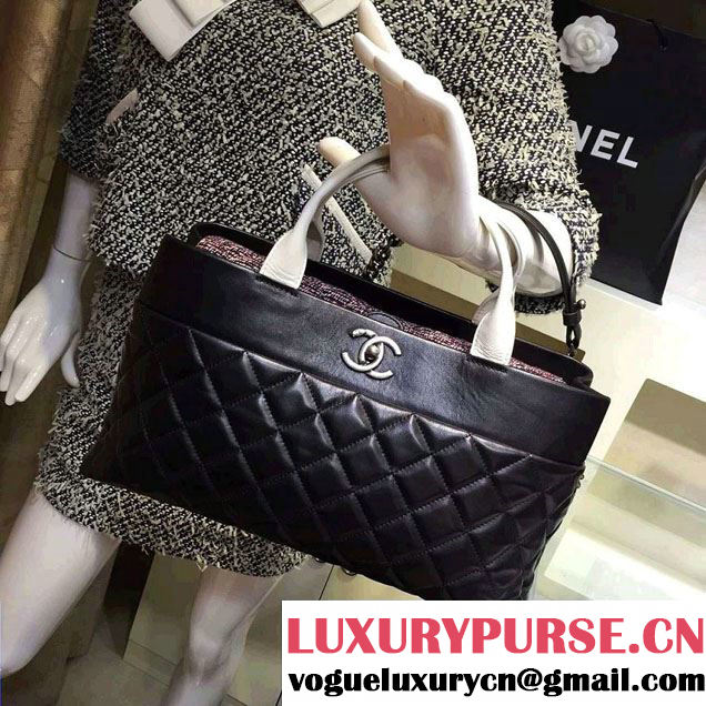 Chanel Tweed/Calfskin Tote Large Bag Black/White 2016