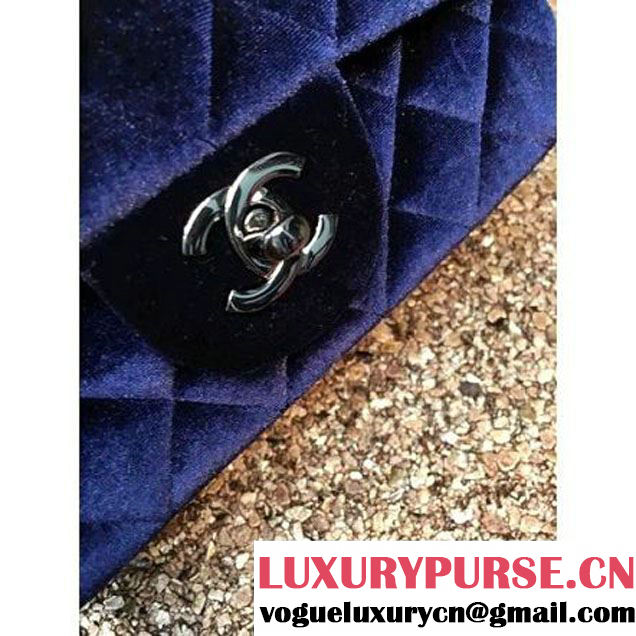 Chanel Velvet Classic Small A1116 Flap Bag Royal Deep Blue (Black Hardware) (MC-112082 )