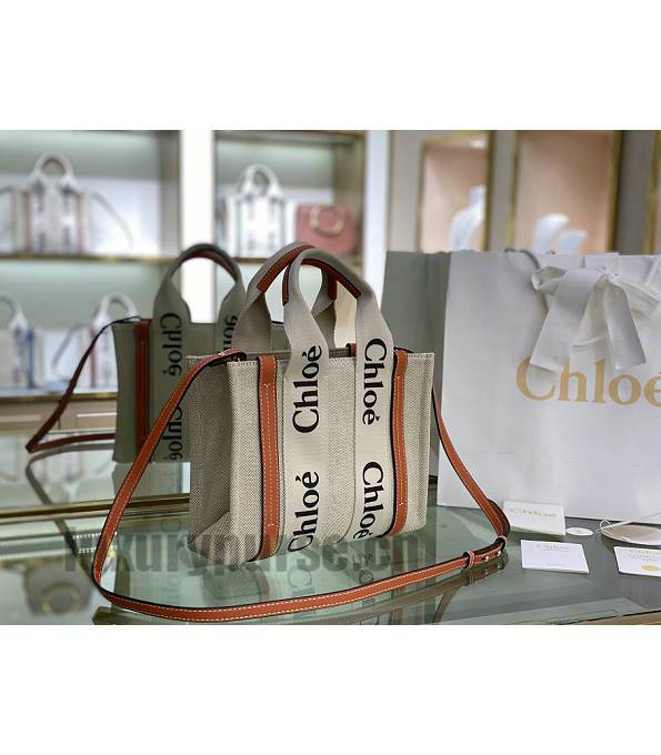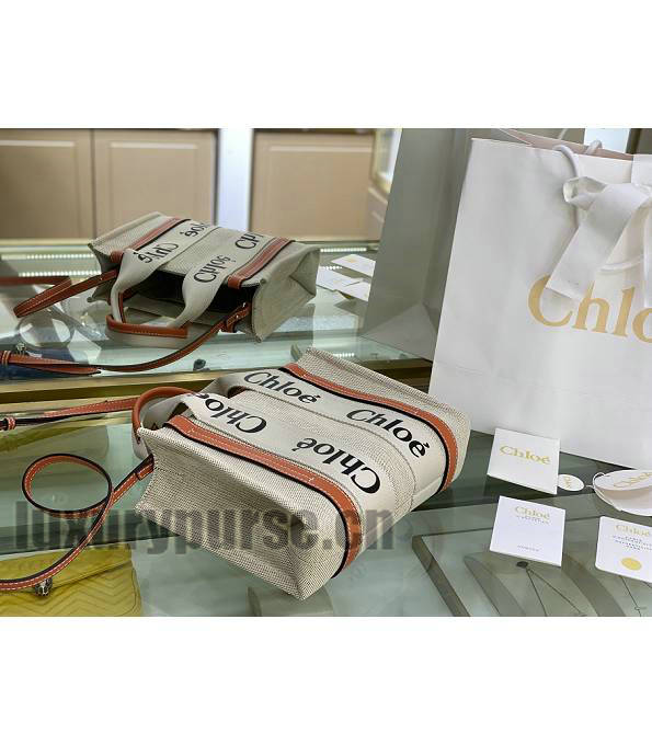 Chloe Canvas With Orange Original Leather Small Woody Tote Shoulder Bag