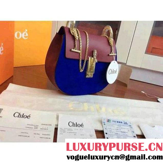 Chloe Drew Bag In Brown/Royal Blue Suede/Smooth Calfskin (2A118-102218 )