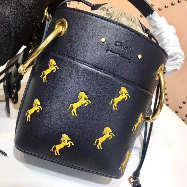 Chloe Smooth Calfskin Mini Drew Shoulder Bag Little Horses Embroidery Black 2018