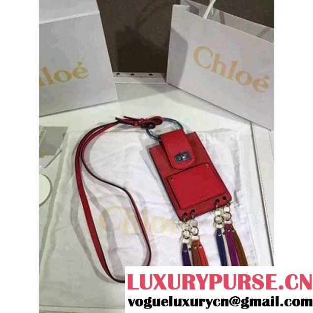Chloe Fringes Smooth & Suede Calfskin Mini Jane Bag Red 2016 (6070139 )