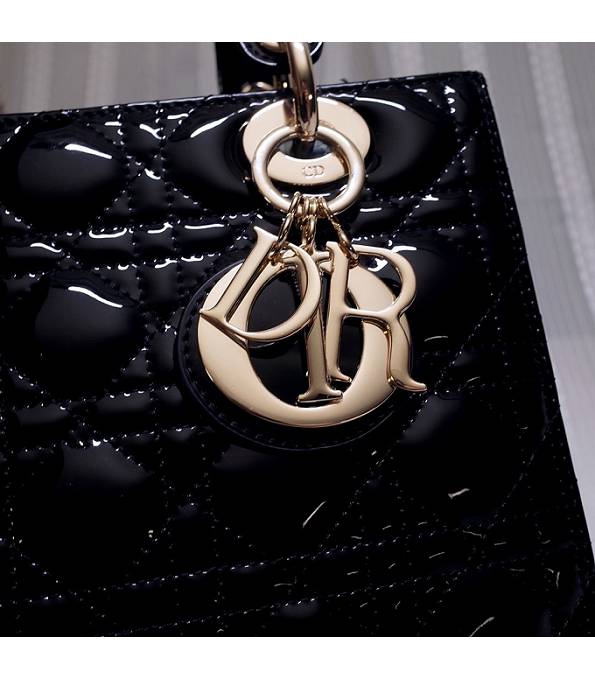 Christian Dior Black Original Patent Leather 24cm Golden Metal Tote Bag