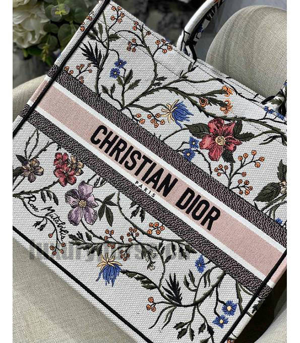 Christian Dior Flower Embroidery Canvas 41cm Book Tote Bag White