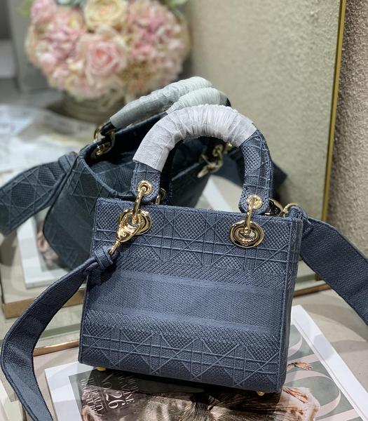 Christian Dior Grey Original Fabric 20cm Tote Bag Golden Metal