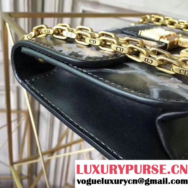 Christian Dior Jardin Japonais Logo Dioraddict Flap Shoulder 22cm Bag Aged Gold Hardware Calfskin Leather Spring Summer 2017 Collection Black