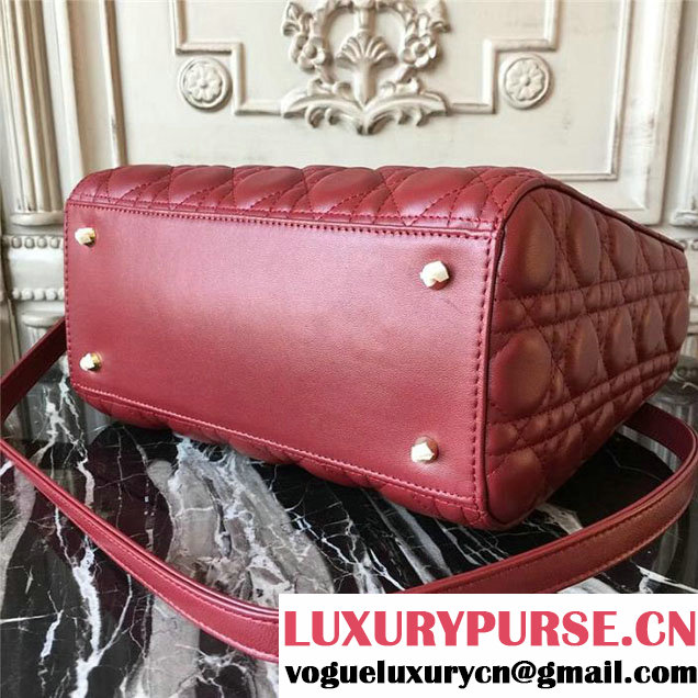 Christian Dior Lady Dior Bag 24cm Gold Hardware Cannage Supple Lambskin Leather Fall Winter 2017 Collection Burgundy