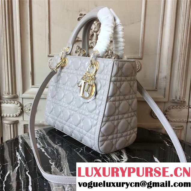 Christian Dior Lady Dior Bag 24cm Gold Hardware Cannage Supple Lambskin Leather Fall Winter 2017 Collection Grey