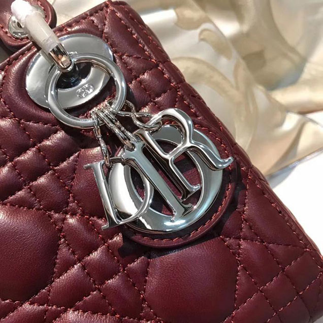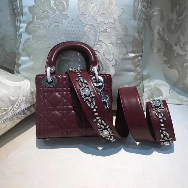 Christian Dior Lady Dior Bag with Crystal Shoulder Strap 17cm Silver Hardware Fall Winter 2017 Collection Burgundy