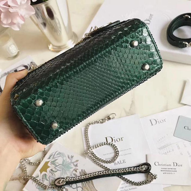 Christian Dior Lady Dior Bag with Python Skin 17cm Diamond Encrusted Silver Hardware Lambskin Leather Cruise 2017 Collection Green