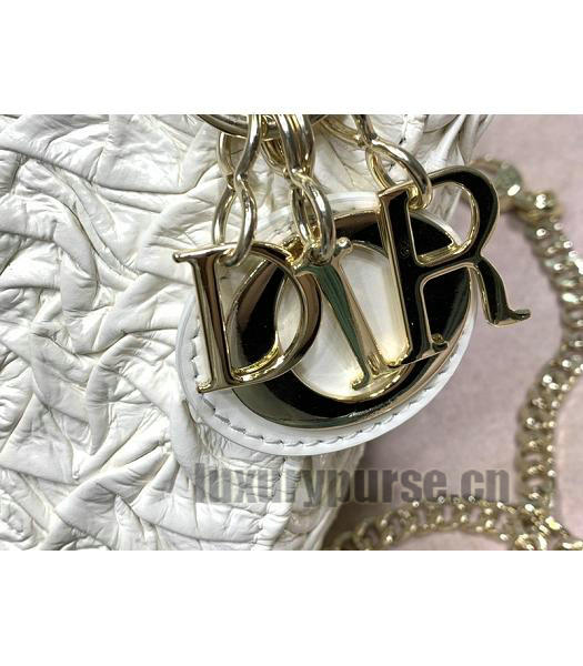 Christian Dior Original Crack Veins Calfskin Golden Metal 17cm Tote Bag White