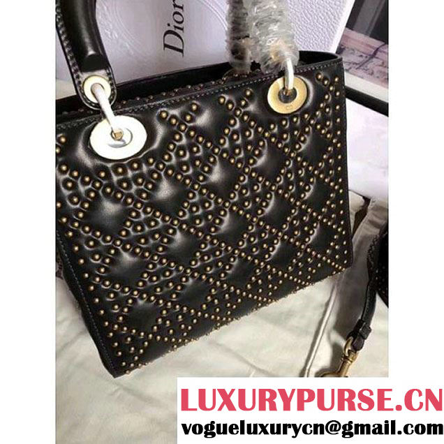 Dior Supple Lady Dior Large Bag in Studded Lambskin 2017