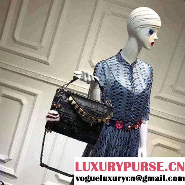 Fendi Black Calfskin Kan I Medium Bag With Fringe 2017 (CL-7092859 )