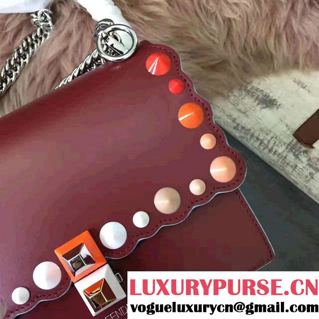 Fendi KAN I Small Stud Detail Scalloped Pattern Leather Mini Bag Burgundy 2017