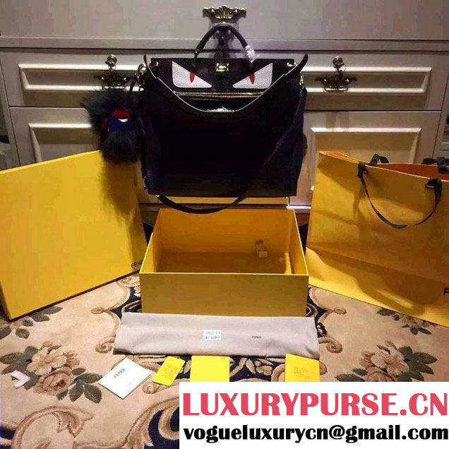 Fendi Selleria Leather Bugs Monster Eyes Peekaboo Men's Bag Black/WhiteSize: 32cm;37cm;42cm