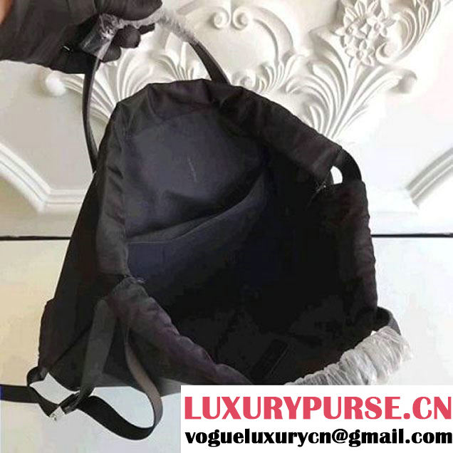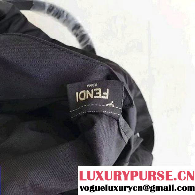 / Fendi Soft Drawstring Backpack in Nylon and Leather With Monster Eyes Black 2017 (CL-7092903 )