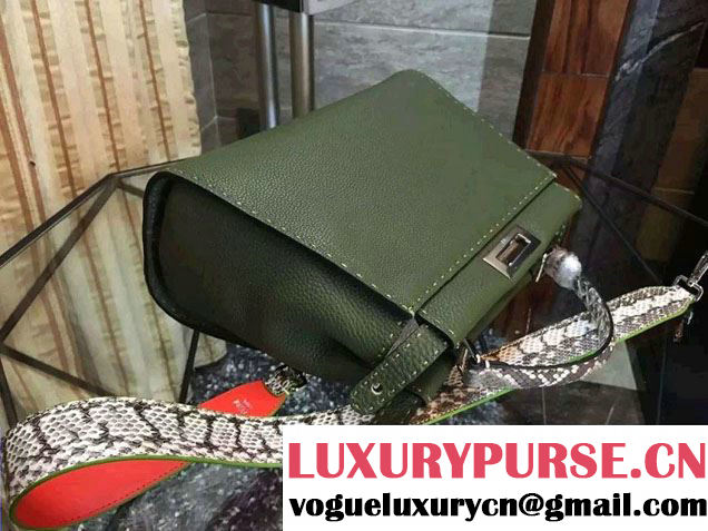 / Fendi Togo Leather Peekaboo Bag Army Green with Python Handle 2016