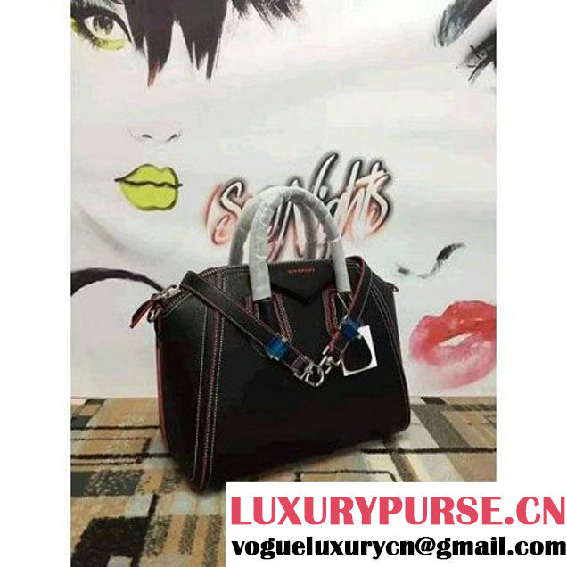 Givenchy Antigona Small Bag In Black Leather With Red Details 2017