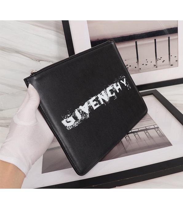 Givenchy White Logo Print Black Original Real Leather Zipper Pouch