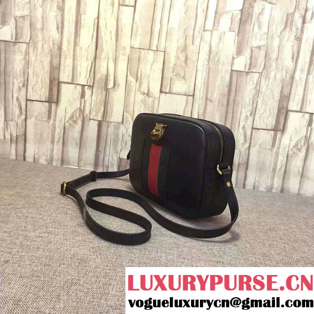 / Gucci Animalier Textured Leather Messenger Bag 412009 Black 2016