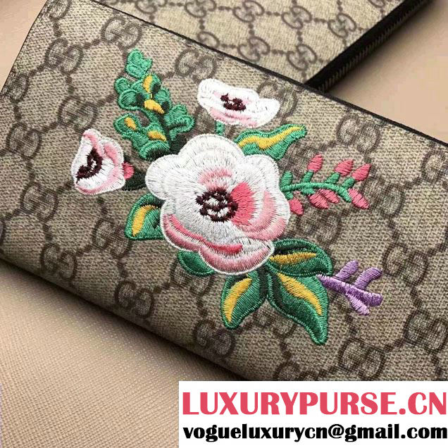 Gucci Embroidered Flowers Exclusive GG Supreme Zip Around Wallet 456863 2016