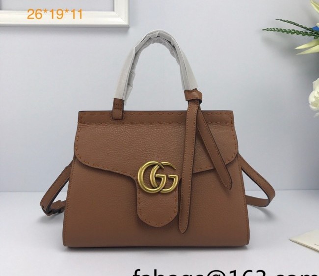 / Gucci GG Marmont Medium Top Handle Bag in Grainy Calfskin 442622 Light Brown 2022