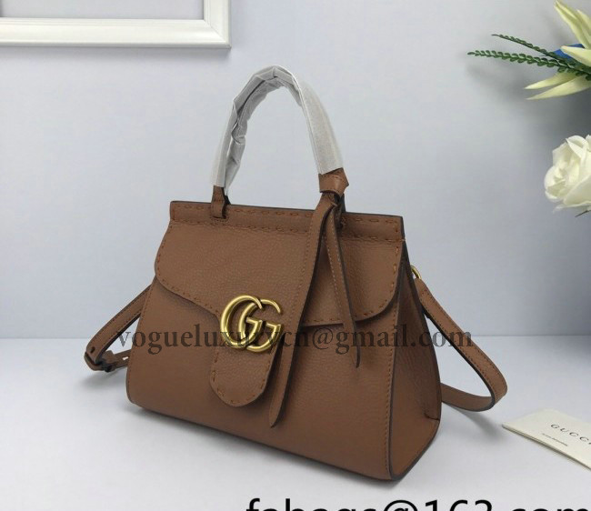 Gucci GG Marmont Medium Top Handle Bag in Grainy Calfskin 442622 Light Brown 2022